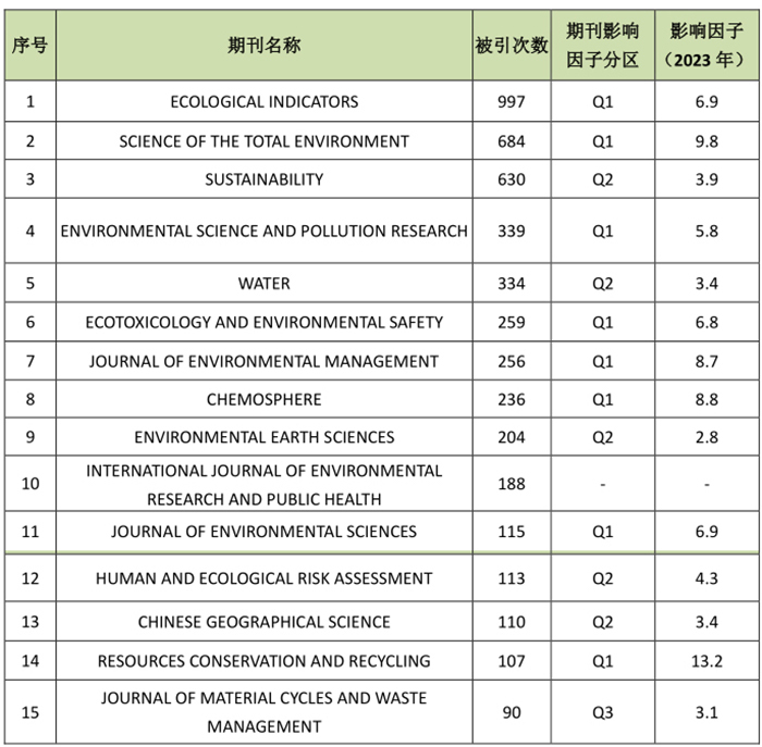 表3 2014-2023年环境学/生态学期刊被引次数TOP 15