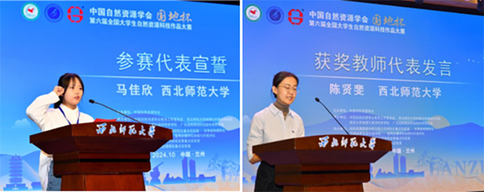 马佳欣同学代表参赛选手在开幕式宣誓 陈贤斐老师代表优秀指导教师在闭幕式发言