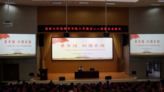 开班仪式结束后,于国建书记以《青年强则国家强》为题,从“中国共产党人的精神谱系”“中国共产党一百年的艰辛与辉煌”“百年党史对我们的启迪”三个方面作了专题报告,并带领学生学习贯彻党的二十届三中全会精神,为培训班学员上了第一课。