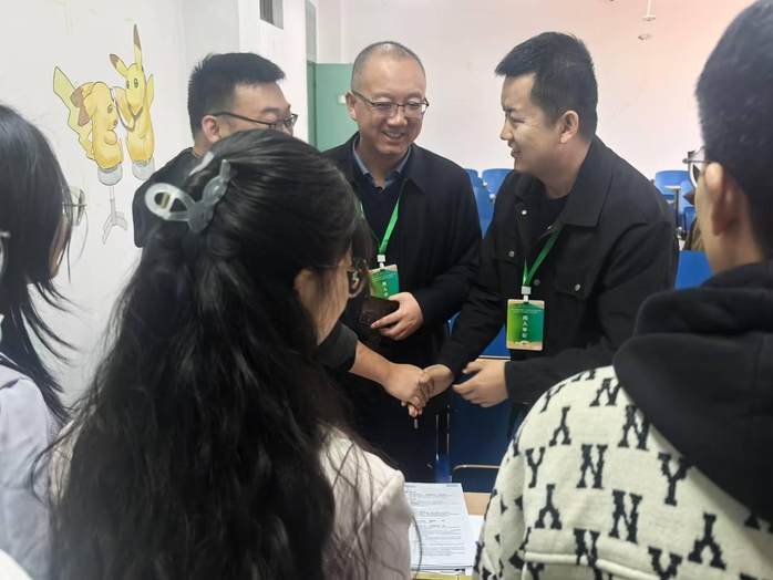 学院党委书记于国建、党委副书记谢文涛亲临双选会现场,对活动的组织安排给予了悉心指导。他们与用人单位代表进行了亲切交流,详细了解了用人单位的招聘需求及对我院毕业生的综合评价,并鼓励毕业生积极展示自我,勇于把握就业机会。