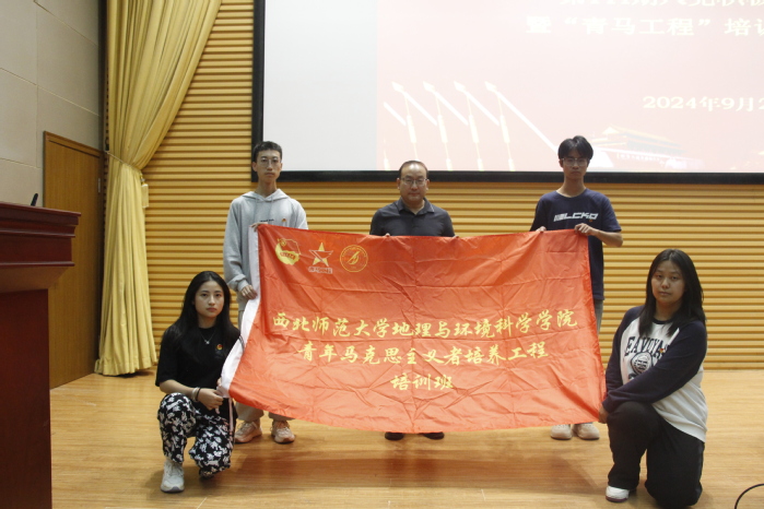 谢文涛书记与于国建书记为青马班授予旗帜,寄于青马班同学殷切期望。