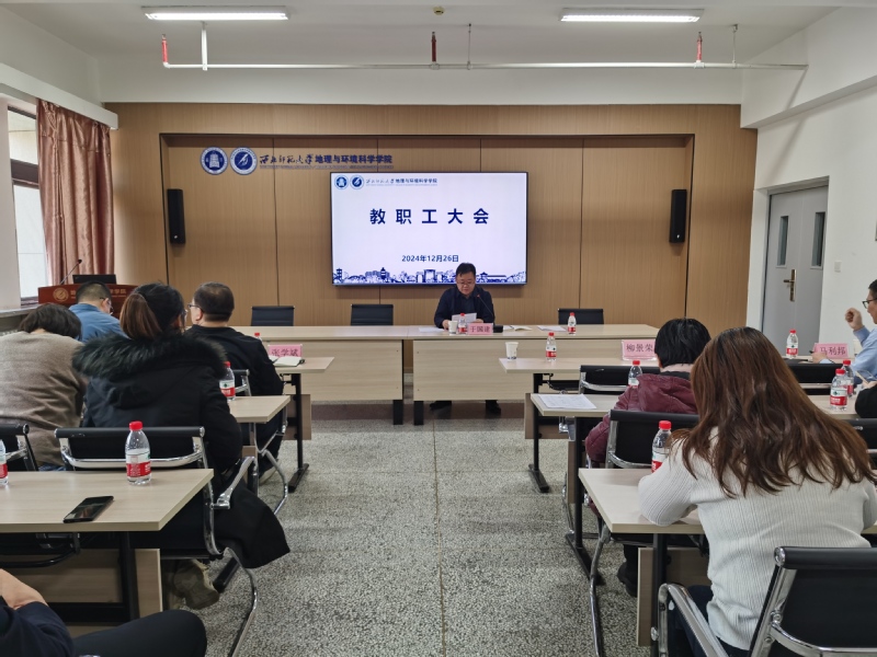 12月26日下午,地环学院教职工大会在知行校区开物楼A801召开,学院全体教职工参加会议,会议由党委书记于国建主持。