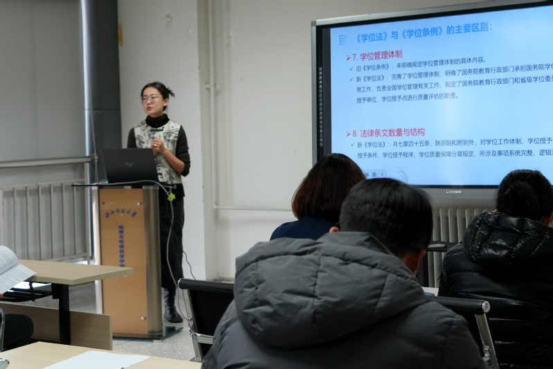 集体学习围绕2025年1月1日正式实施的《中华人民共和国学位法》开展,各位专业导师从学位工作体制、学位授予资格、学位授予条件、学位授予程序、学位质量保障、学位类型、学位授予单位的自主权等七个方面,对新《学位法》和旧《学位条例》之间的区别进行了研讨。参与导师表示,新《学位法》的出台与实施,从法律层面巩固了学位制度改革成果,规范了学位授予活动,保障了学位质量,也保护了学位申请人的合法权益;对建设教育强国、科技强国、人才强国提供了有力的政策支撑。
