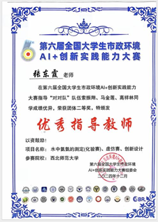 2024年12月28日,由哈尔滨工业大学、同济大学、北控水务集团有限公司共同主办的第六届全国大学生市政环境AI+创新实践能力大赛在哈尔滨隆重举行。437bwin必赢国际官网2022级环境工程专业本科生索振翔、马金莲、高祥林斩获大赛团体二等奖,王晨雯老师与张东霞老师荣获“优秀指导教师”,张剑老师荣获“优秀领队”。
