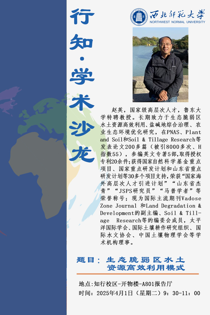地环学院行知•学术沙龙:生态脆弱区水土资源高效利用模式