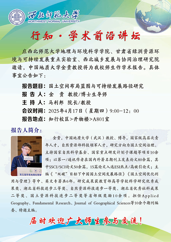 地环学院行知•学术前沿讲坛2025-06期:国土空间布局蓝图与可持续发展路径研究