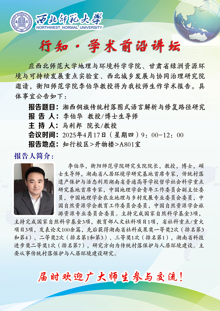 地环学院行知•学术前沿讲坛2025-07期:湘西侗族传统村落图式语言解析与修复路径研究