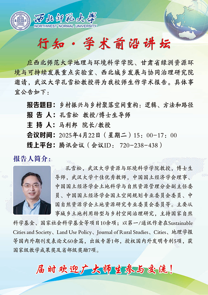 地环学院行知•学术前沿讲坛2025-09期:乡村振兴与乡村聚落空间重构:逻辑、方法和路径