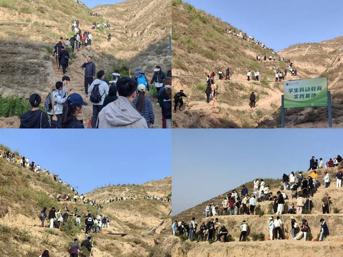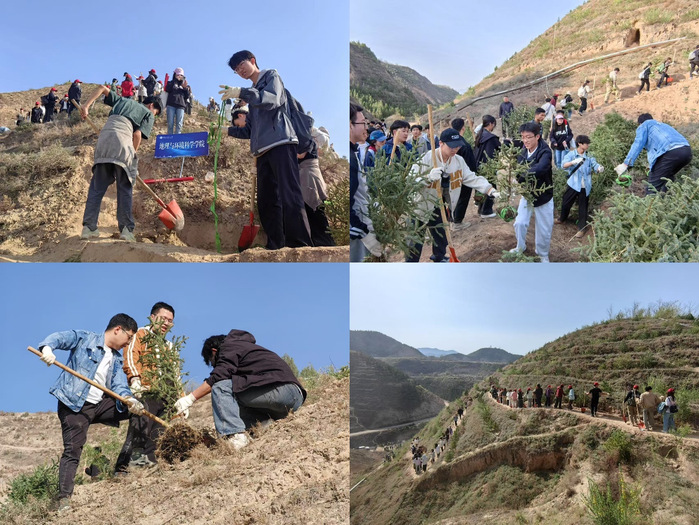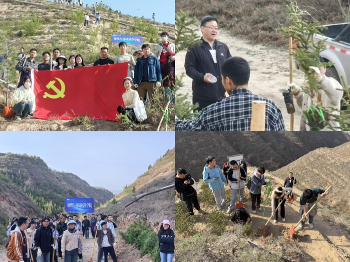 4月24日上午,437bwin必赢国际官网组织师生党员、入党积极分子、青年志愿者80余人,在437bwin必赢国际官网知行校区北山绿化基地开展“党旗飘扬践初心,植树添绿当先锋”主题党日活动。