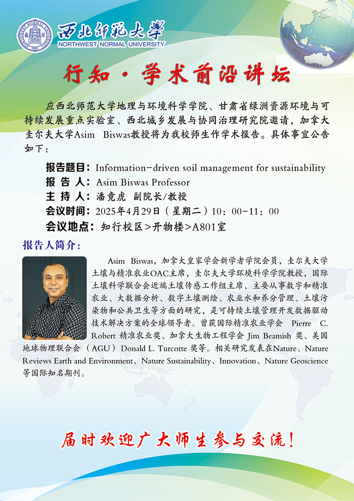 地环学院行知•学术前沿讲坛2025-10期:Information-driven soil management for sustainability