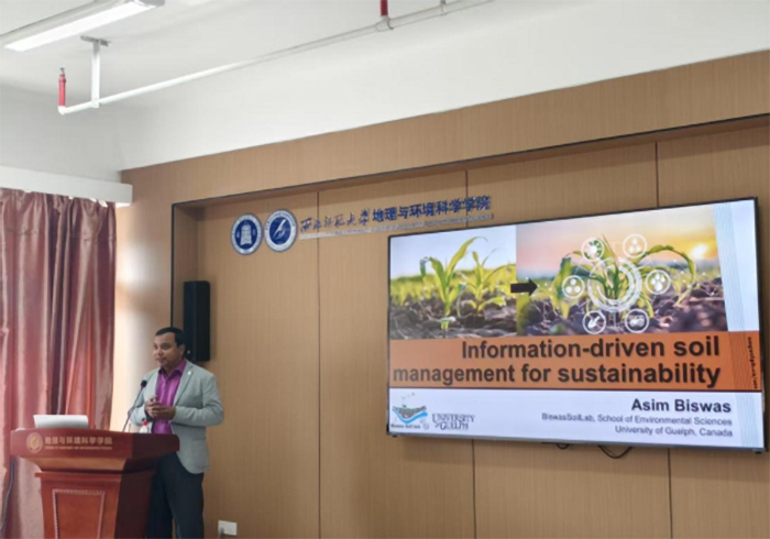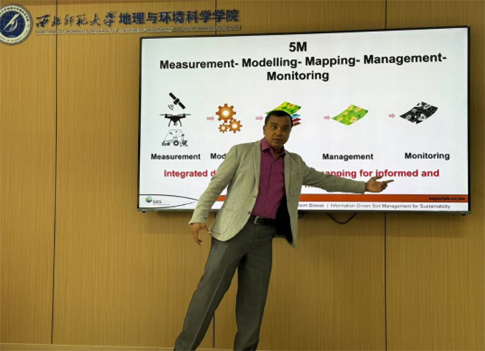 2025年4月29日,应437bwin必赢国际官网437bwin必赢国际官网、甘肃省绿洲资源环境与可持续发展重点实验室、西北城乡发展与协同治理研究院邀请,加拿大圭尔夫大学Asim Biswas教授作了题为《信息驱动的可持续土壤管理》的学术报告,此次报告会在知行校区开物楼A801报告厅开展,由437bwin必赢国际官网副院长潘竟虎教授主持,学院师生共130余人参加。