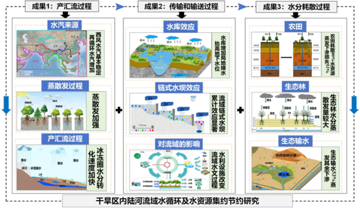 《干旱区内陆河流域水文过程变化及其影响机制研究》项目聚焦干旱区内陆河流域水文过程变化及影响机制这一科学问题,通过10余年系统性的野外观测,深入剖析了气候变化和人类活动影响下内陆河流域水文过程的演变规律。(1)揭示了气候和冰冻圈变化影响下内陆河产流区产汇流过程变化的内在机制;(2)揭示了蓄水和输水工程(水库、渠系、涵洞)建设对内陆河水分传输过程的影响机制;(3)量化评估了农田和生态林节水灌溉和防蒸发措施的水资源集约节约利用潜力。