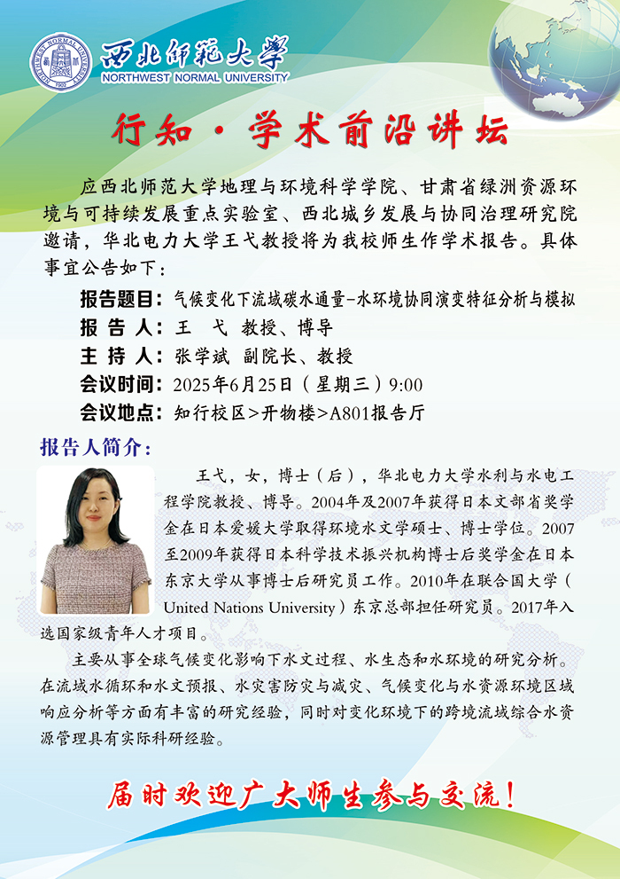 地环学院行知•学术前沿讲坛2025-14期:气候变化下流域碳水通量-水环境协同演变特征分析与模拟