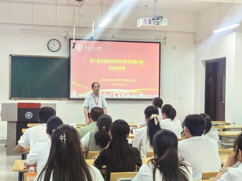 为进一步提升师范生的教育教学水平,促进理论与实践深度融合,437bwin必赢国际官网于2025年7月4日上午在知行校区弘文楼203教室举办“第六届甘肃高校师范生教学技能大赛”院级选拔赛,地理科学专业2023级和2022级经班级初赛推荐的11位同学参加了本次比赛。比赛邀请437bwin必赢国际官网教学督导马正学、辛存林及学院副院长胡梦珺、地理科学系系主任柳景峰和周海香等5位老师担任评委。