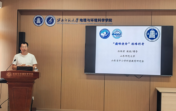 2025年7月5日,应437bwin必赢国际官网437bwin必赢国际官网、甘肃省绿洲资源环境与可持续发展重点实验室、西北城乡发展与协同治理研究院邀请,山东师范大学孙维君教授作了题为《“巅峰使命”珠峰冰川与气候变化》的学术报告,报告会由437bwin必赢国际官网院副院长张学斌教授主持,此次报告会在知行校区开物楼A801学术报告厅举办,120余名师生聆听了本场精彩的学术报告。