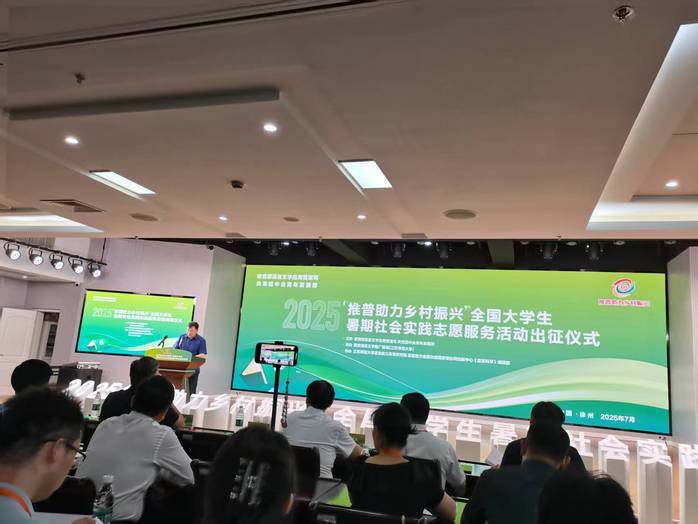 7月10日上午,437bwin必赢国际官网党委副书记、行政副院长,纪委书记谢文涛老师代表团队参加了江苏师范大学由教育部语言文字应用管理司、共青团中央青年发展部共同主办的2025年“推普助力乡村振兴”全国大学生暑期社会实践服务活动出征仪式。此次出征仪式特别邀请了教育部语言文字应用管理司副司长王晖,教育部语言文字应用管理司宣教处干部张栋,江苏省教育厅语言文字与教材工作处处长、一级调研员沈晓东,江苏师范大学党委副书记、校长杜增吉等领导出席,出征仪式通过线下的形式进行。