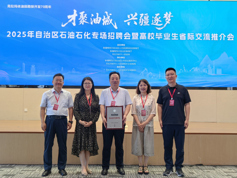 据悉,本次活动吸引了全国62所高校、141家企业及3000余名求职者参与,通过座谈、对接、访企等多种形式,架起了跨区域就业与产业人才培育的桥梁。我校就业与校友事务处负责人被授予“克拉玛依市就业宣传形象大使”荣誉称号。