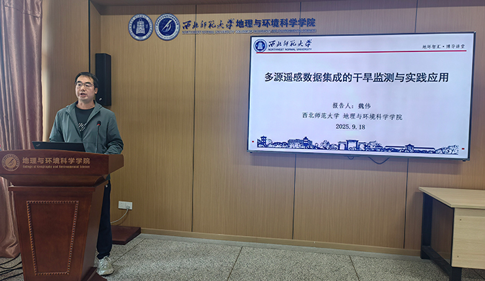 报告会上,魏伟教授结合遥感与地理信息技术介绍了干旱监测的背景,接着重点讲解了干旱监测的技术进展,以及如何利用遥感技术对干旱事件进行识别和分析。最后,通过应用案例讲解与分析深化了师生对遥感监测干旱的认识。
